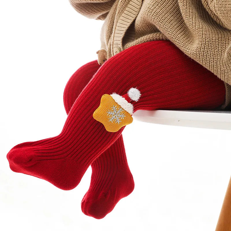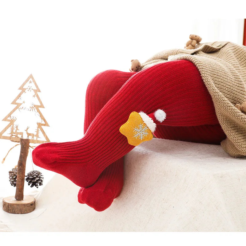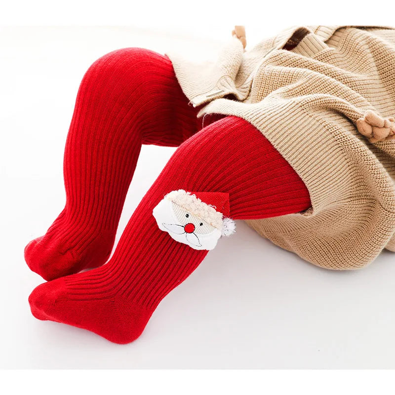 0-6Yrs Children Cartoon Christmas Tights Soft Cotton Baby Girls Red Pantyhose Leggings Kids Infant New Year Gifts Tights