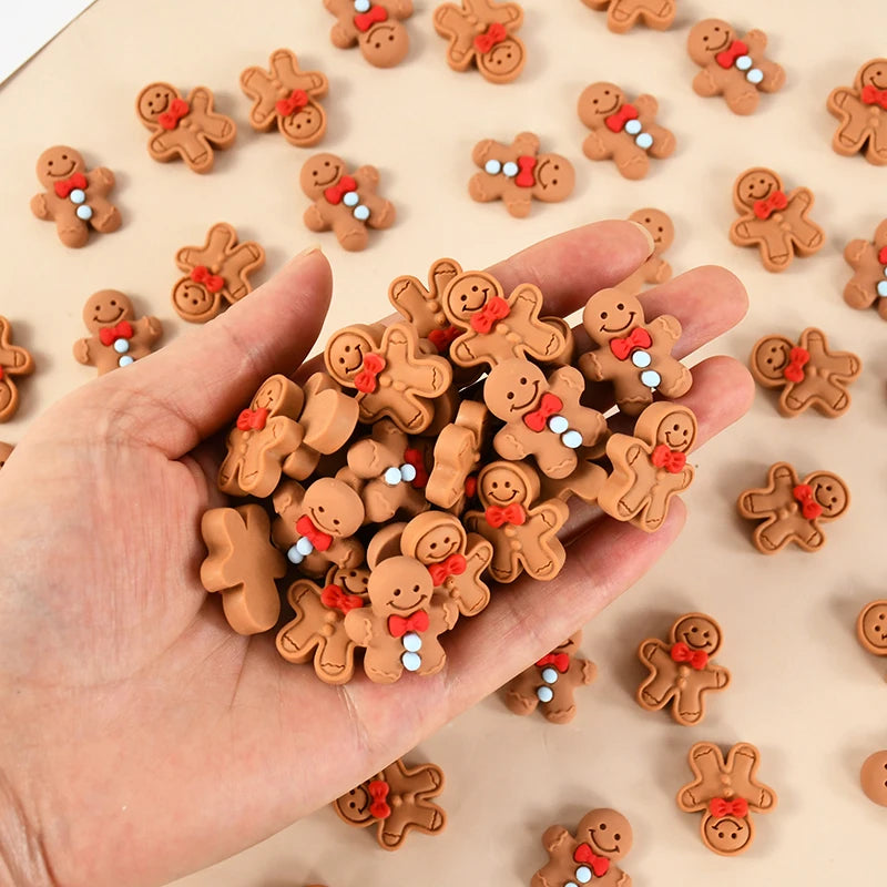 10/20Pcs Mini Gingerbread Man Resin Ornaments Christmas Decoration Flatback Cabochon Figurine Scrapbook DIY Jewelry Accessories