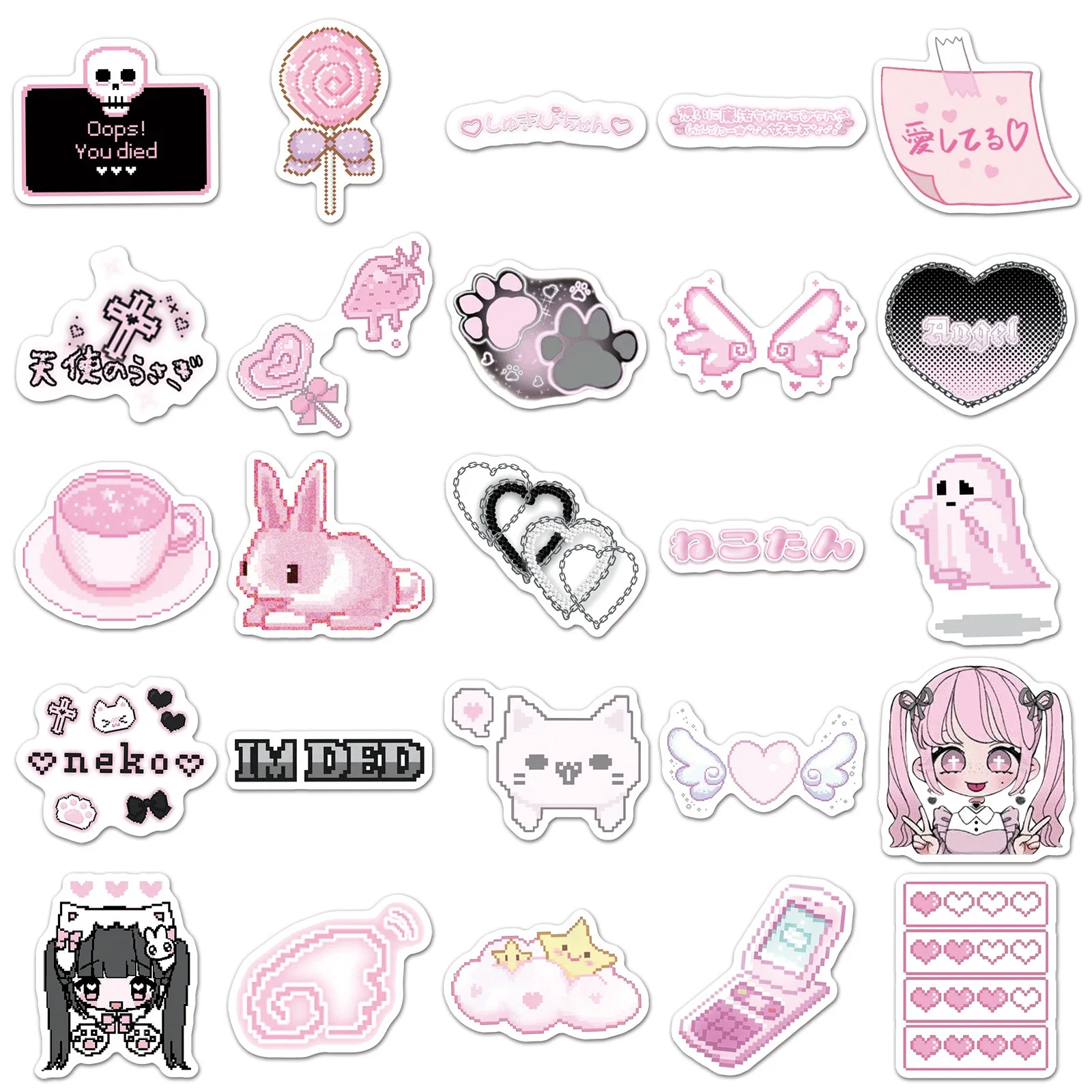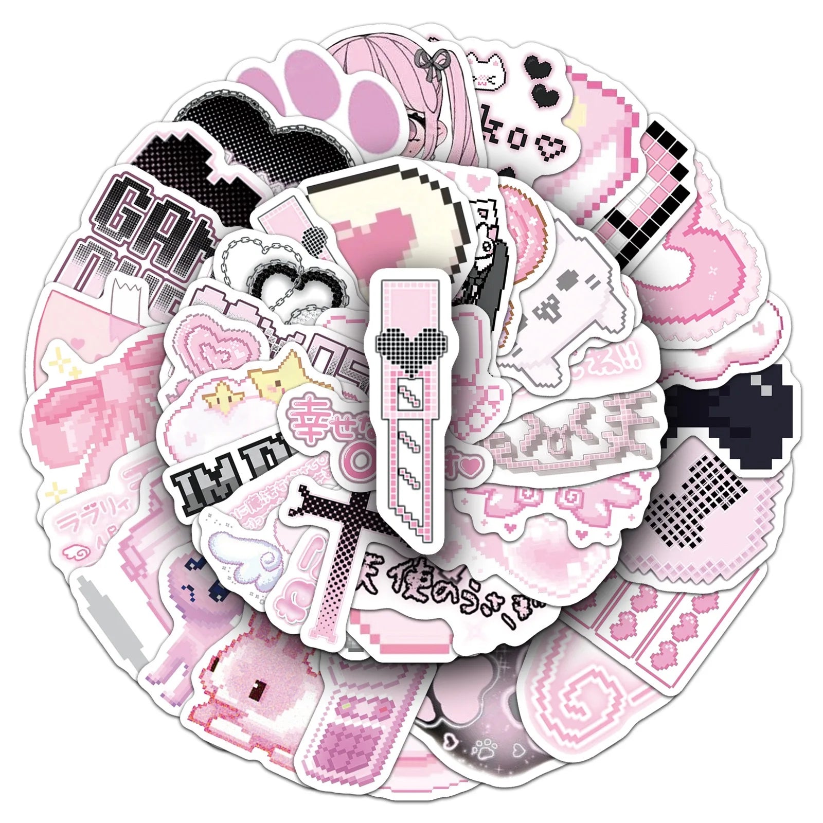 10/50pcs Cute Pixel Pink Goth Girls Graffiti Stickers Aesthetic Decals DIY Fridge Laptop Phone Diary Stationery Sticker Kid Toy