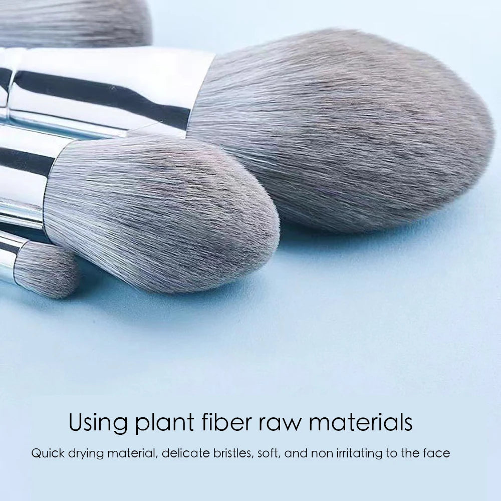 14pcs Silver Makeup Brushes Set Powder Grey Blush Concealer Foundation Eyeshadow Eyeliner Eye Cosmetics Face Beauty Tools