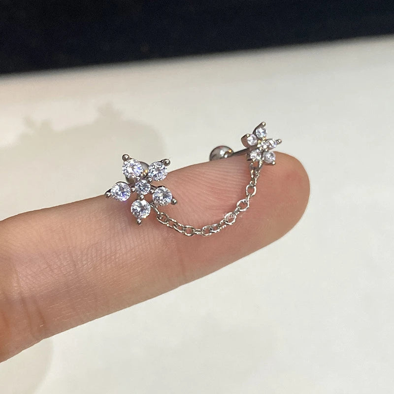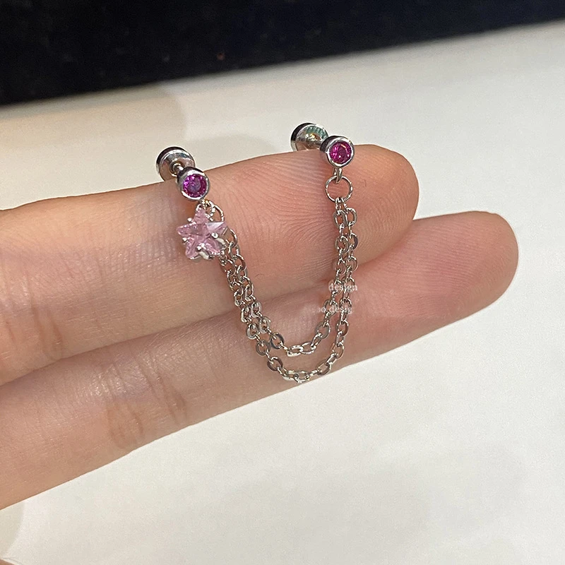 1PCS Pink Love Heart Chain Double Ear Hole 316L Stainless Steel Ear Bone Nail Y2K Fashion Hottie Earrings for Women Jewelry