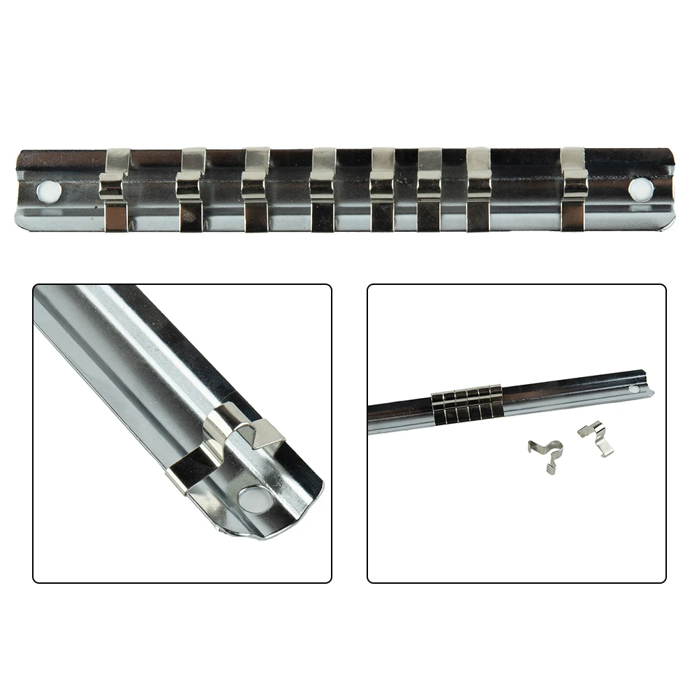 1Pcs Socket Rack Holder 1/4" 3/8" 1/2" With 8 Clips On Rail Tool Organizer Storage Socket Storage Rack For Storing Loose Socket