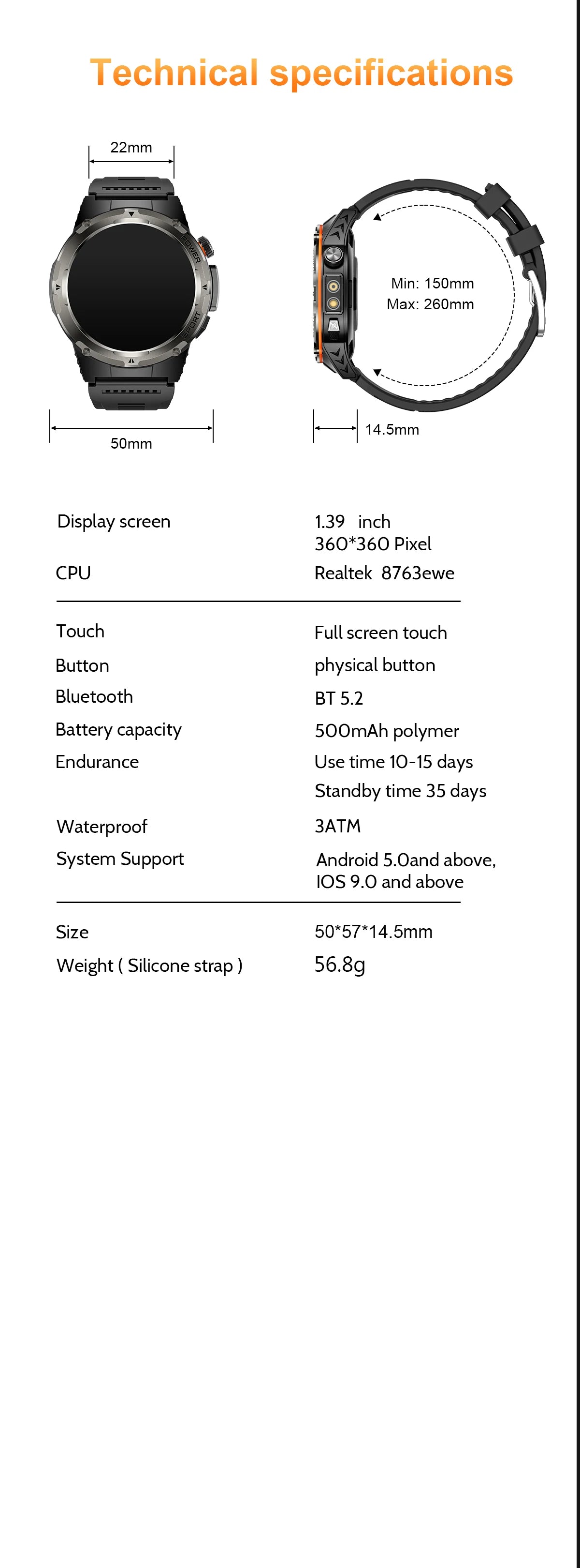 Resolution: 360*360 AMOLED Display Screen