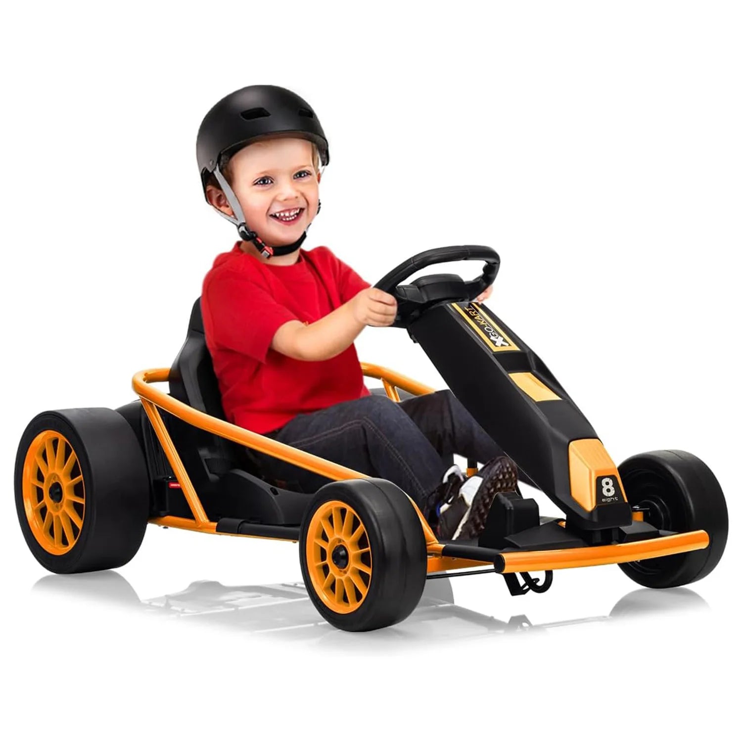 High-Speed Performance: Powered by two 250W motors with a 25,000 RPM rating, this go-kart can reach speeds of up to 8 mph. It also features a high/low speed switch, giving kids the option to choose their preferred speed, while the low chassis enhances drifting stability.