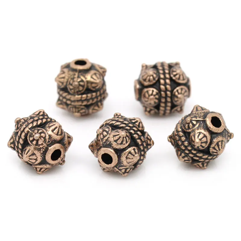 4 /30 Pcs Antique Copper Flower Carved Spacer Beads Metal Cylinder Beads Loose Spacer Bead For Jewelry Making DIY Charm Bracelet