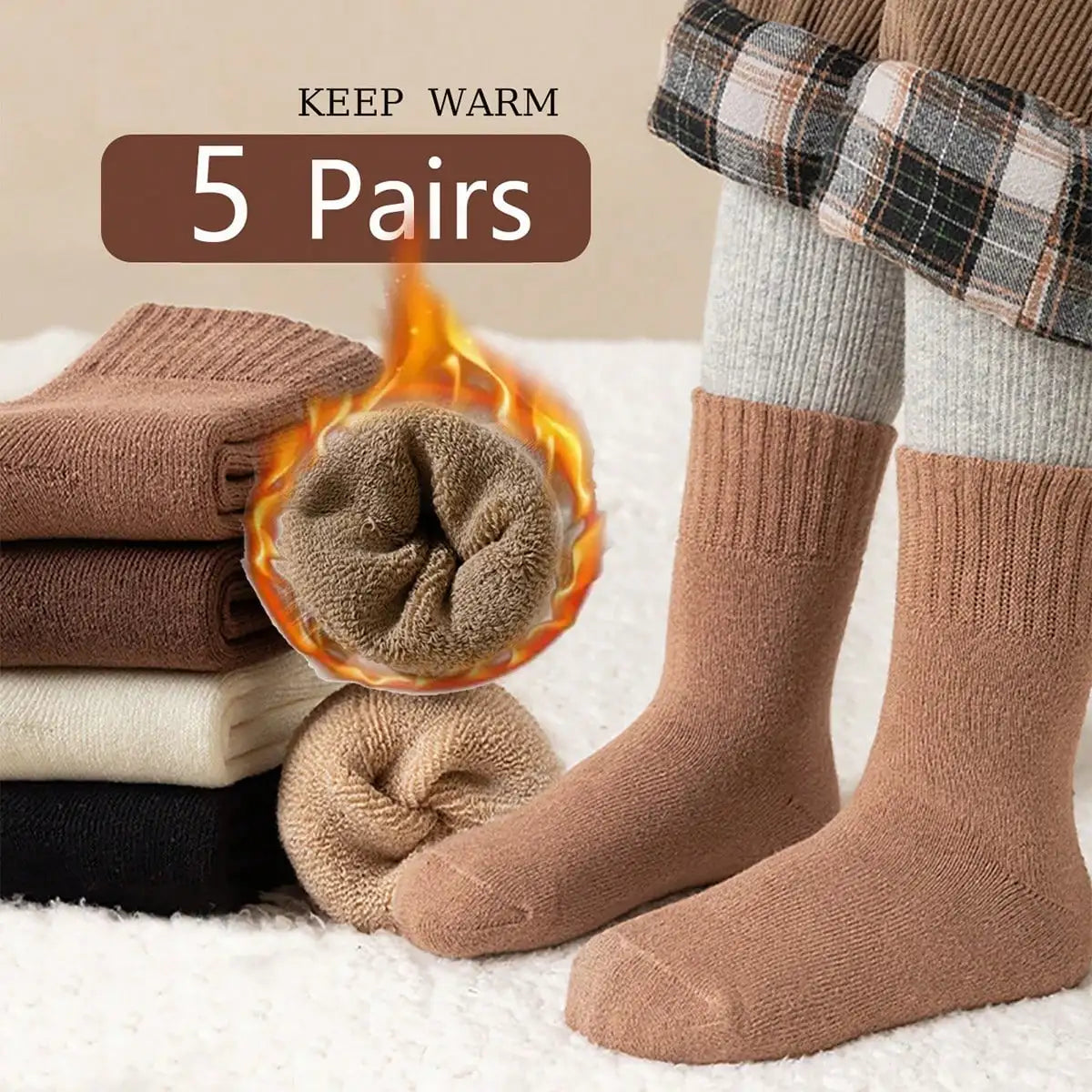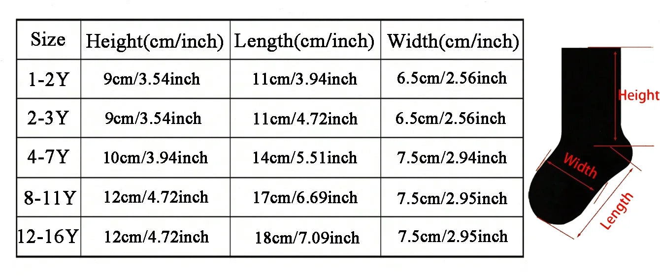 5 Pairs of Children's Thick Terry Socks with Letter Print, Warm and Fleece-Lined Mid-Calf Length Baby Glove Socks.