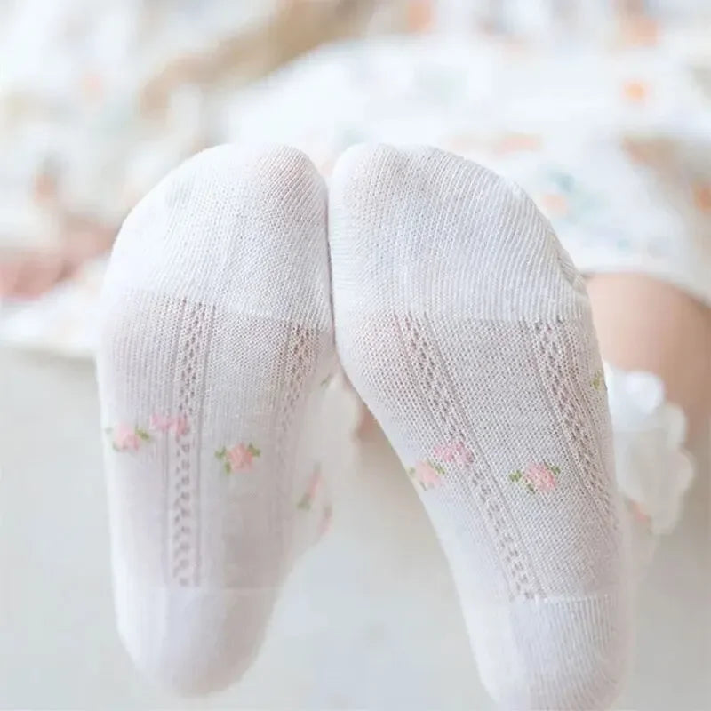 5Pairs/Lot Cute Kids Socks For Girls Boys Cotton Solid Princess Children Sock Casual Summer Mesh Thin Flower Cartoon Socks