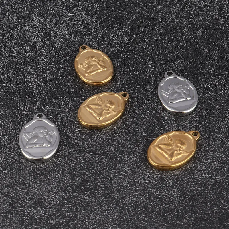 5pcs Stainless Steel Angel Pendant Charms for DIY Jewelry Making Handmade Components Necklace Findings Jewelry Angel Charm