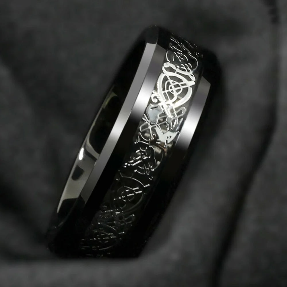 8mm Black Fashion Men Rings Dragon Pattern Stainless Steel Rings For Men Wedding Engagement Jewelry Christmas Gift