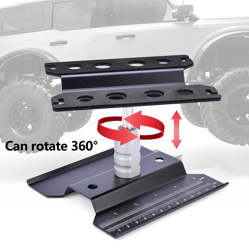 Heightening Work Stand Assembly Platform 360 Degree Rotate Repair Station for RC 1/8 1/10 Traxxas TRX-4 SCX10 Tamiya HSP,RC repair tool alloy screw tray with strong magnet. Constructed from high grade aluminum alloy, not easy to break, resistant to rust, long lasting. Nice accessories to storage repair accessories tidy, making the RC repairing easier.