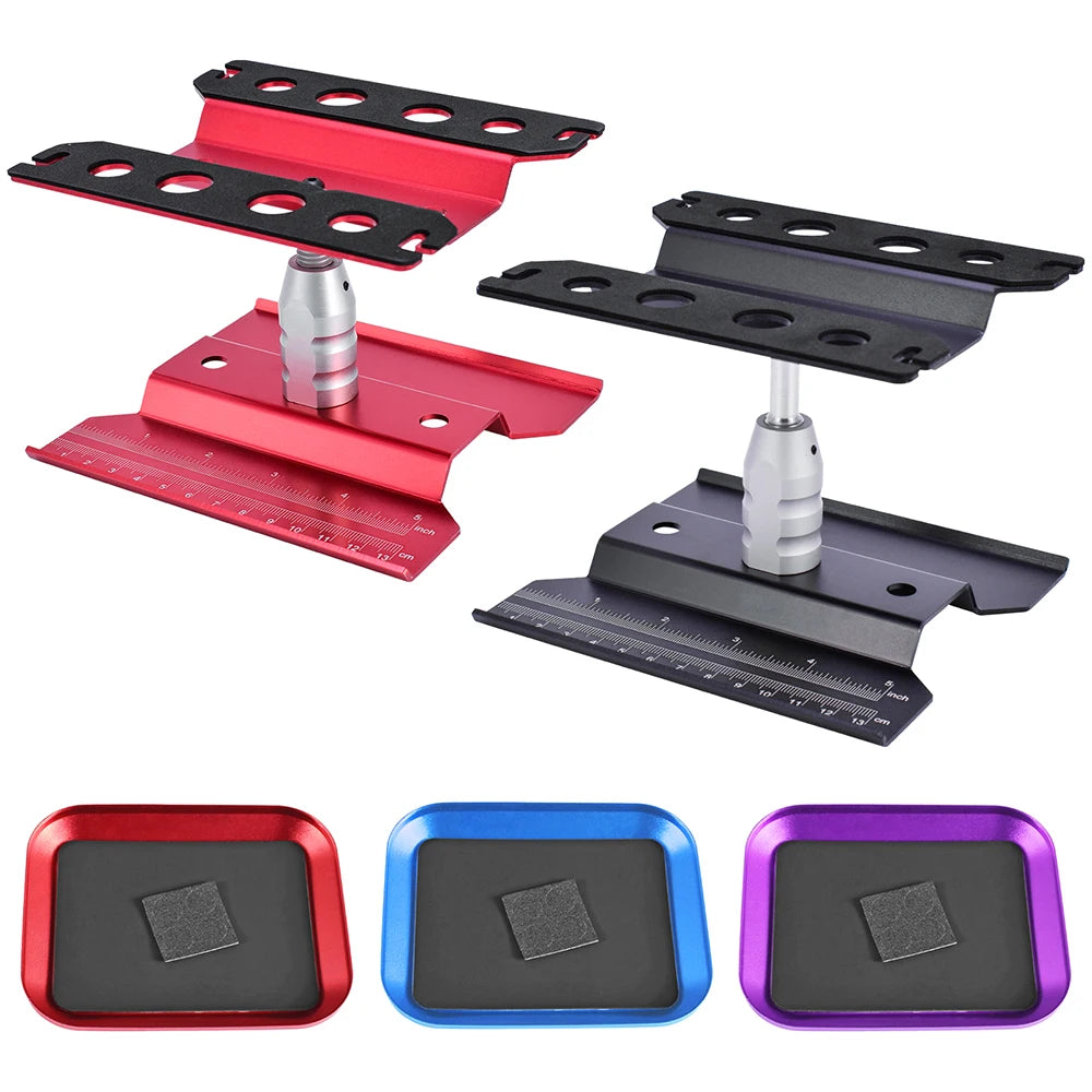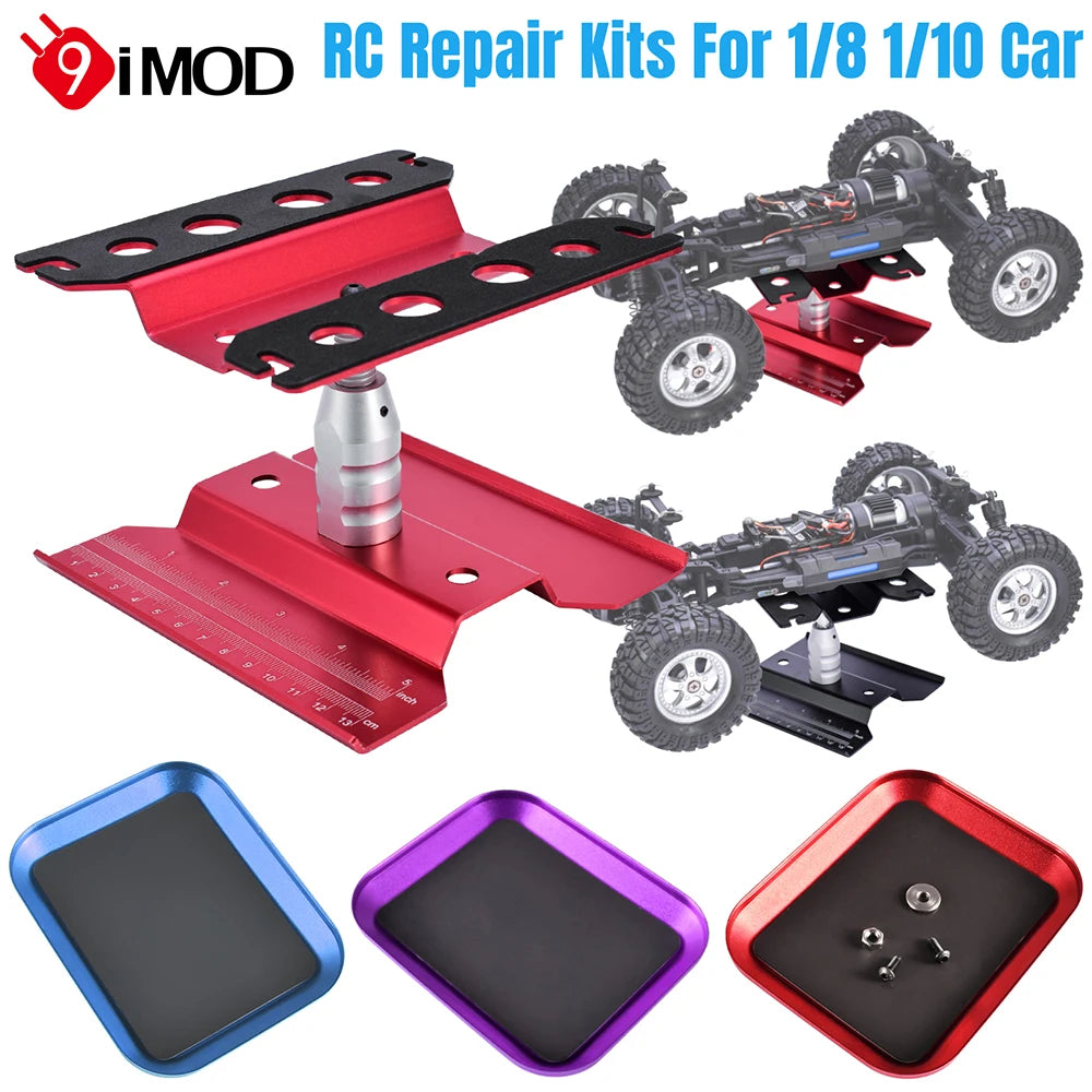 9IMOD RC Car Work Stand Metal Repair Workstation 360°Rotation Adjustable Height with Weakly Magnetic Tray For 1:8 1:10 RC Model Car