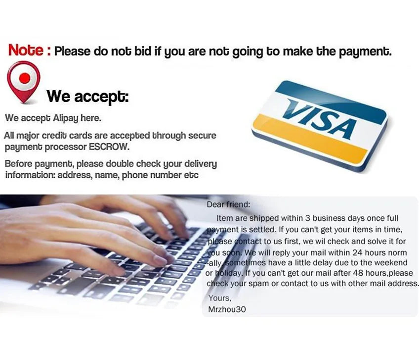 If you have any problems with our items or services. Please before you leave negative feedback, contact us first. We will do our best to solve any problems and provide you with the best customer services.