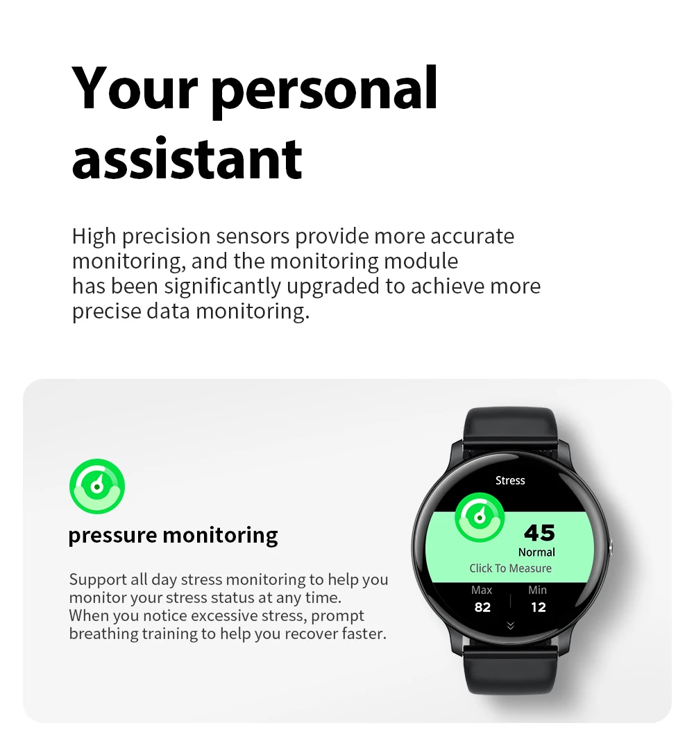 2.Health:heart rate, blood oxygen, blood pressure, sitting reminder, sleep monitoring, heart rate monitoring, etc.