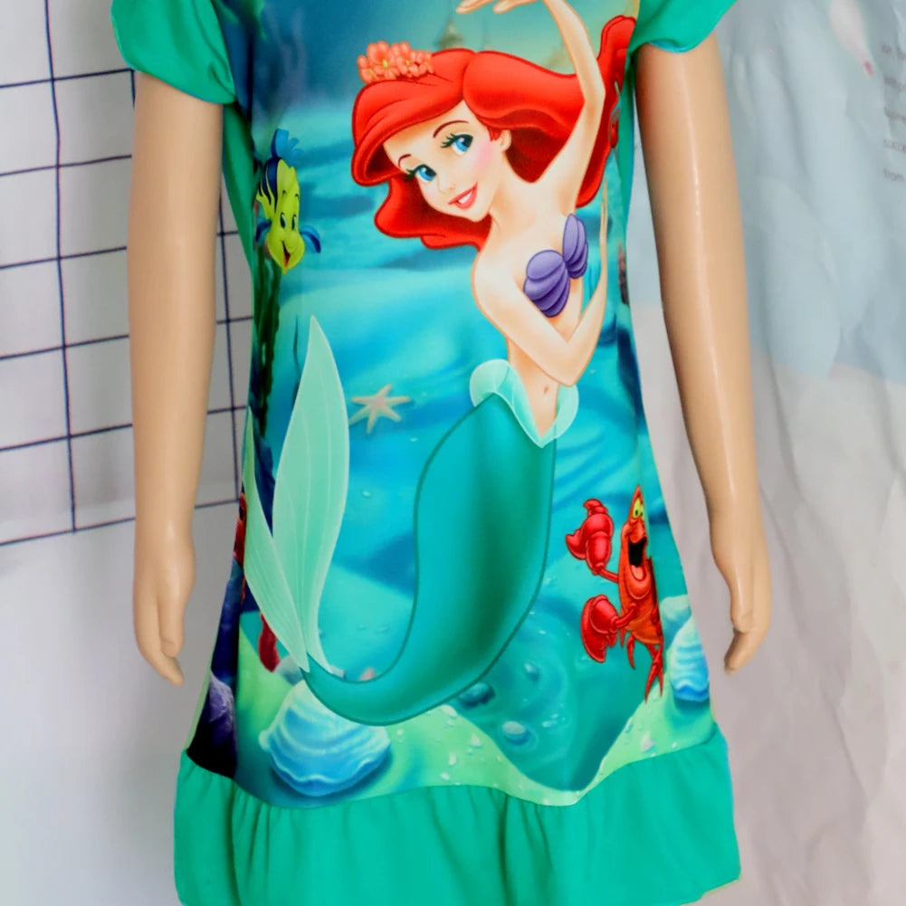 New Summer Kids Cartoon 3-8Years Mermaid Dress Sleepwear Princess Girls Printing Nightgowns Children Party Dresses Pajamas