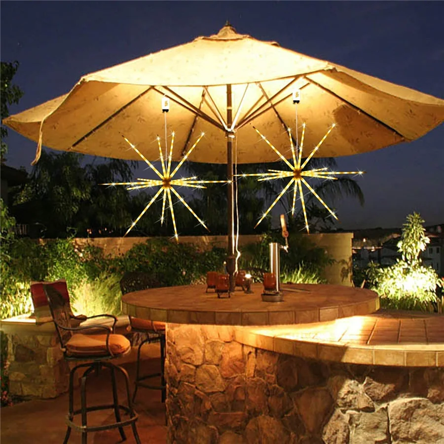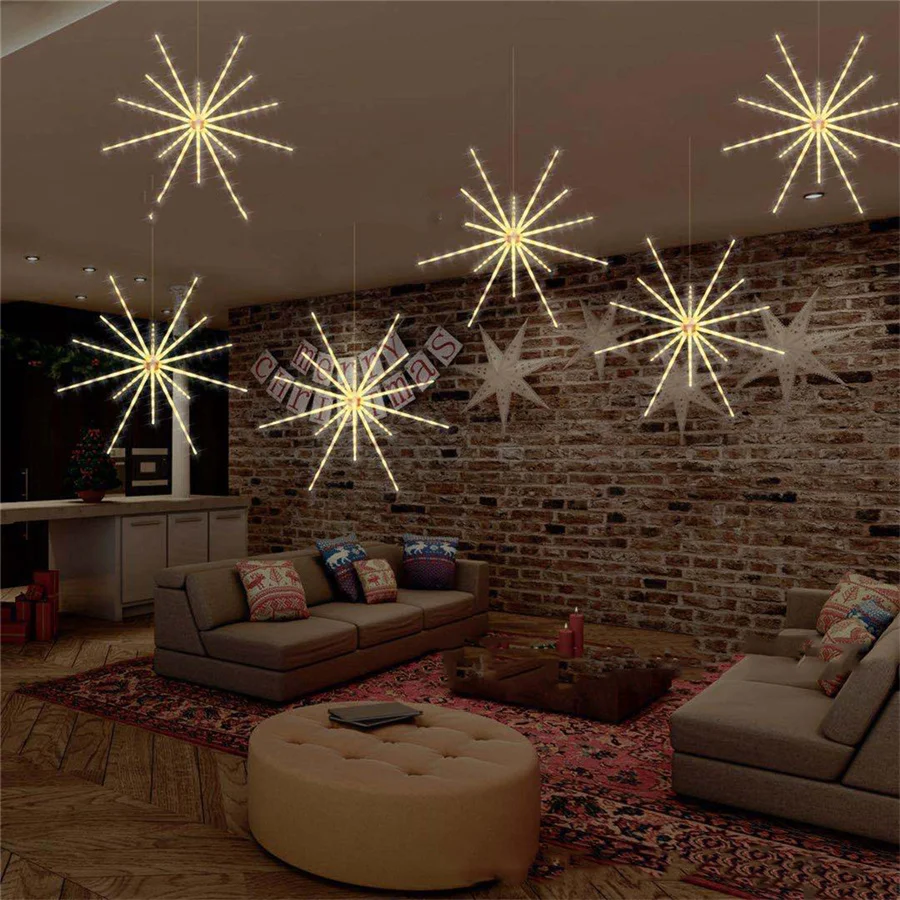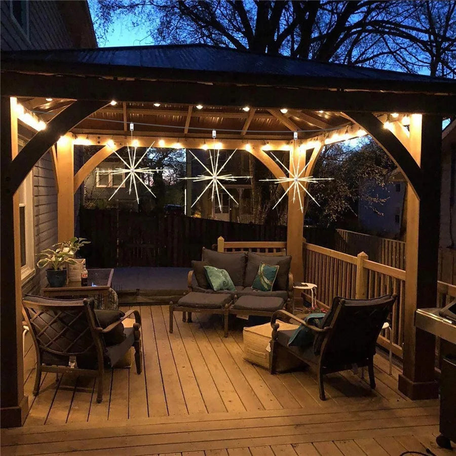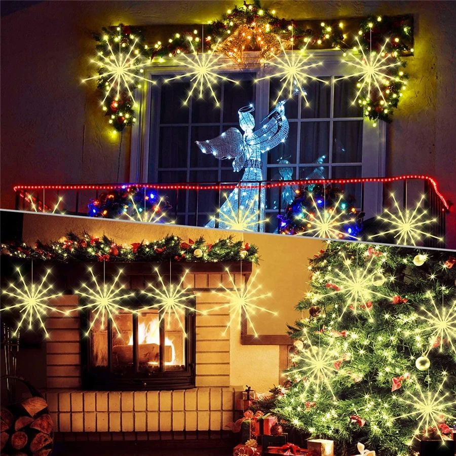 Outdoor Waterproof Starburst Christmas String Lights Battery Operated 112LED Hanging Firework Fairy Garden Lights Garland Decor