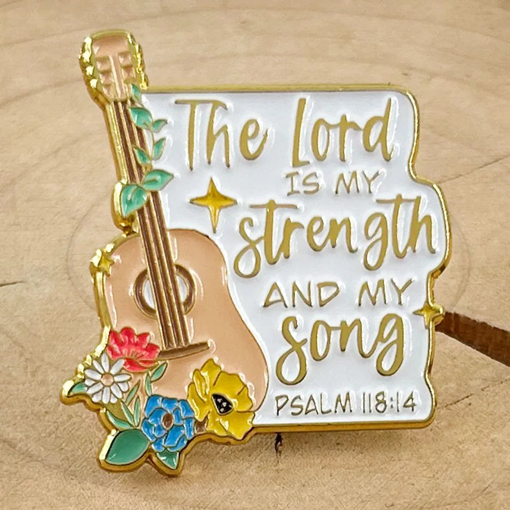 Psalm 118:14 Enamel Pin The Lord is My Strength And Song Badge Christian Brooch Floral Bible Jewelry Gift