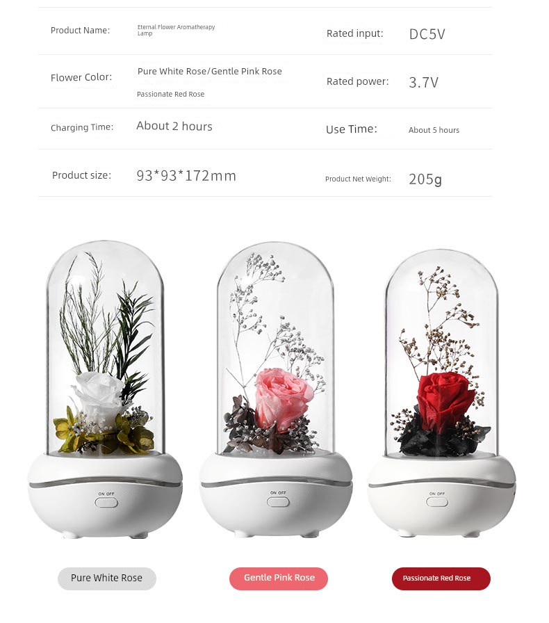 Qixi Valentine's Day Gift Preserved Fresh Flower Fragrance Lamp Rose Romantic Practical Gift for Girlfriend Friends Girlfriends Night Light