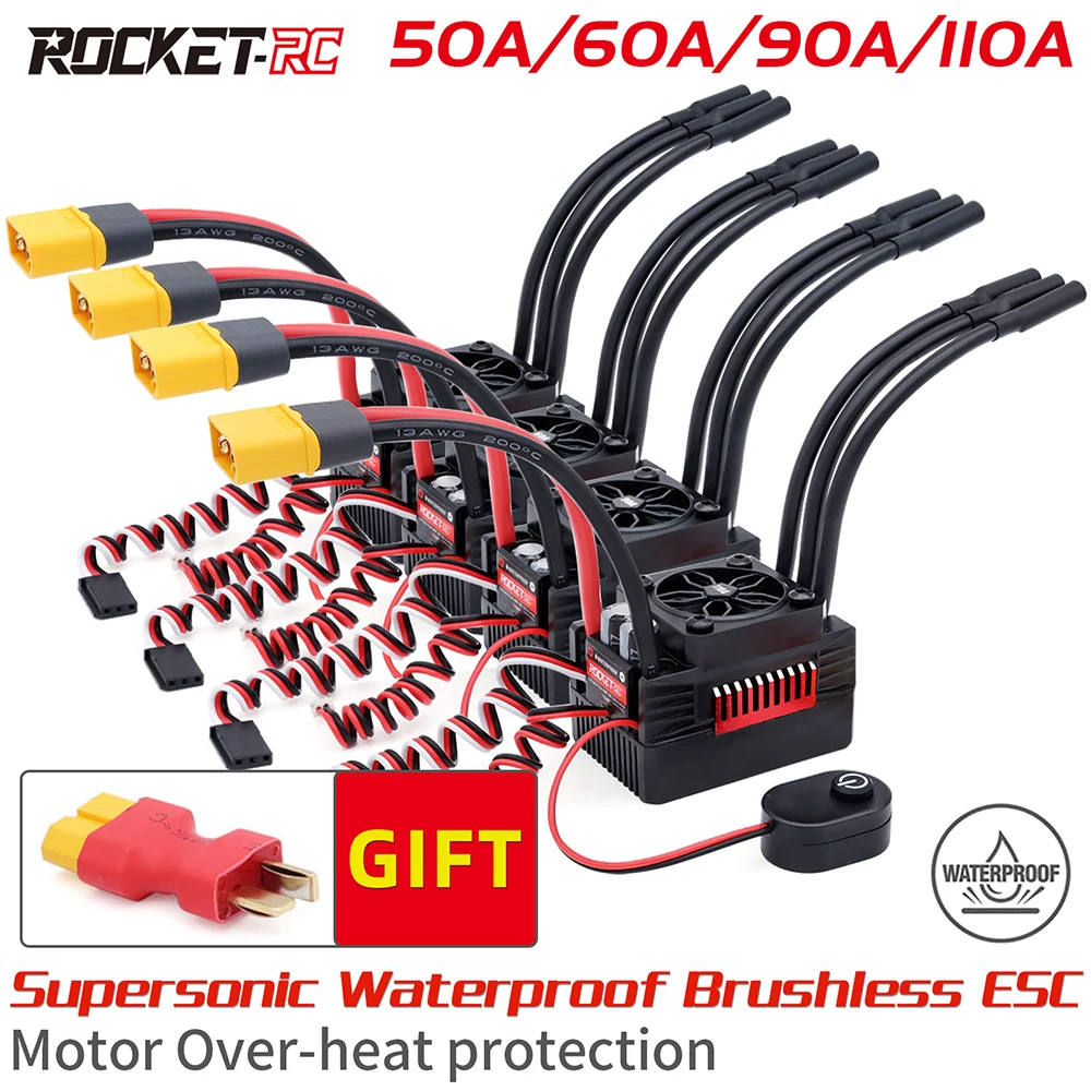 Rocket V2 Supersonic 50A 60A 90A 110A ESC Waterproof Brushless Speed Controller with 7.4V/8.4V 6A BEC for 3650 Motor 1:10 RC Car