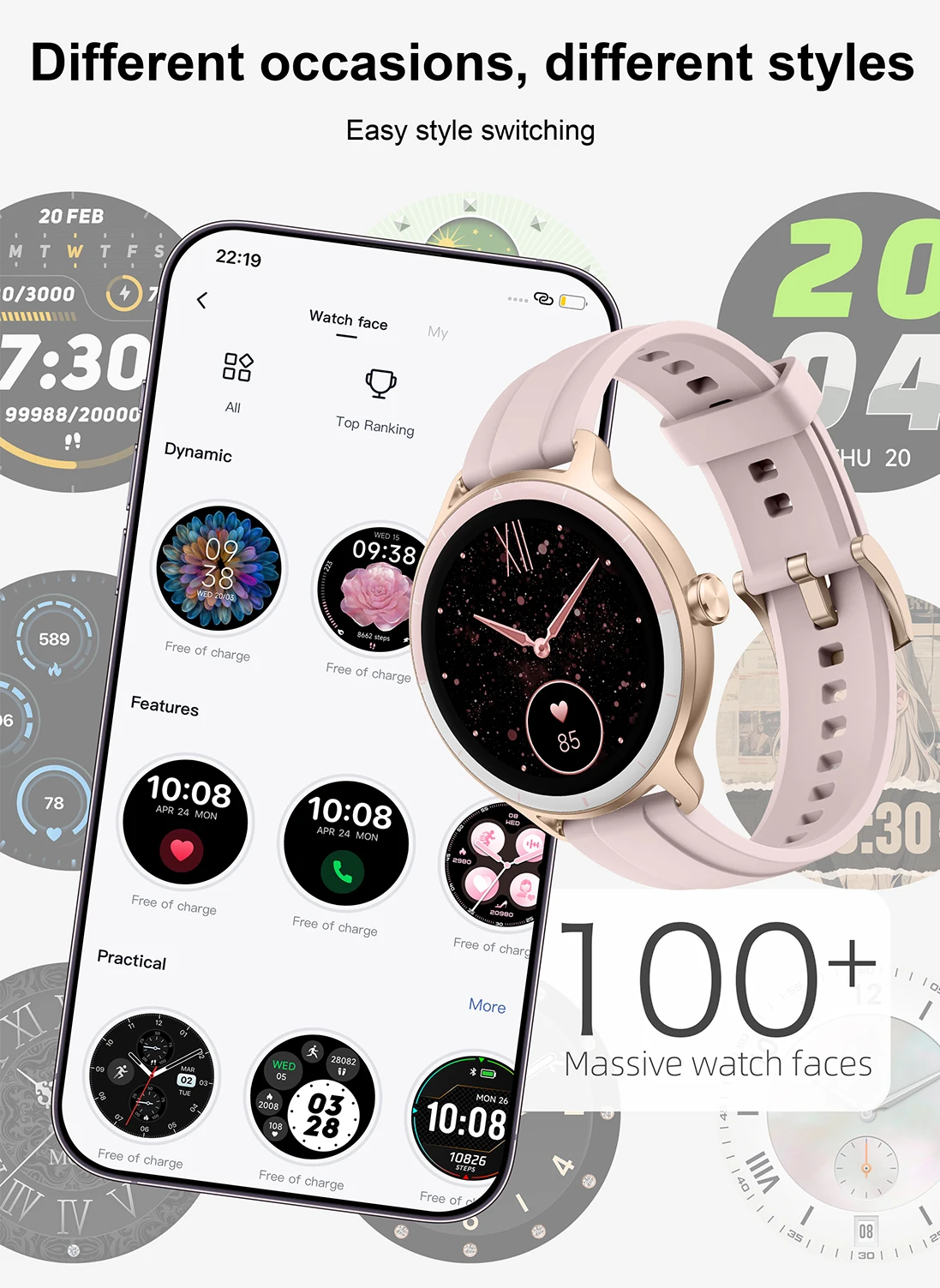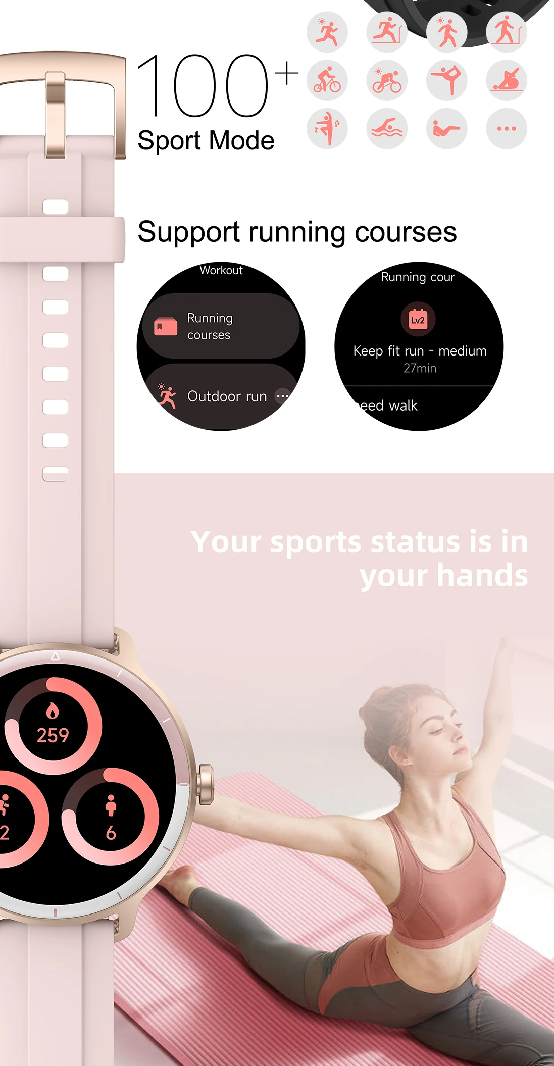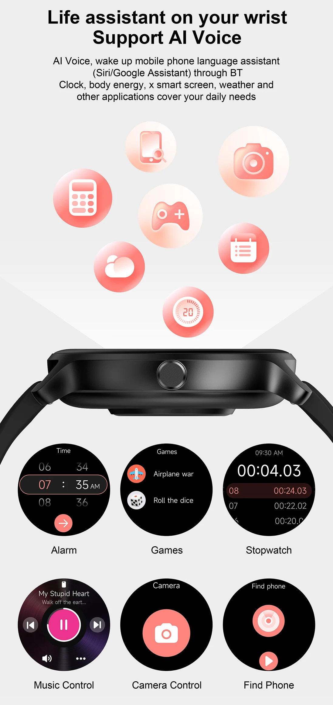 function: Pedometer,chronograph,Calendar,Alarm Clock,Power Reserve,Countdown,Noctilucent,Sleep Tracker,Speed Measurement,Fitness Tracker,THERMOMETER,Call Reminder,Answer Call,Push Message,Mood Tracker,Message Reminder,Dial Call,Heart Rate Tracker,Moisture Measurement,Smart Counter,Activity Tracker,Social Media Notifications,Calorie Tracker,Breath Monitor,Distance Tracker,Multisport Tracker,SOS button,Sedentary Reminder,Music Player,Menstrual Management,AI voice assistant,WORLD TIME,Calculators,Positioning