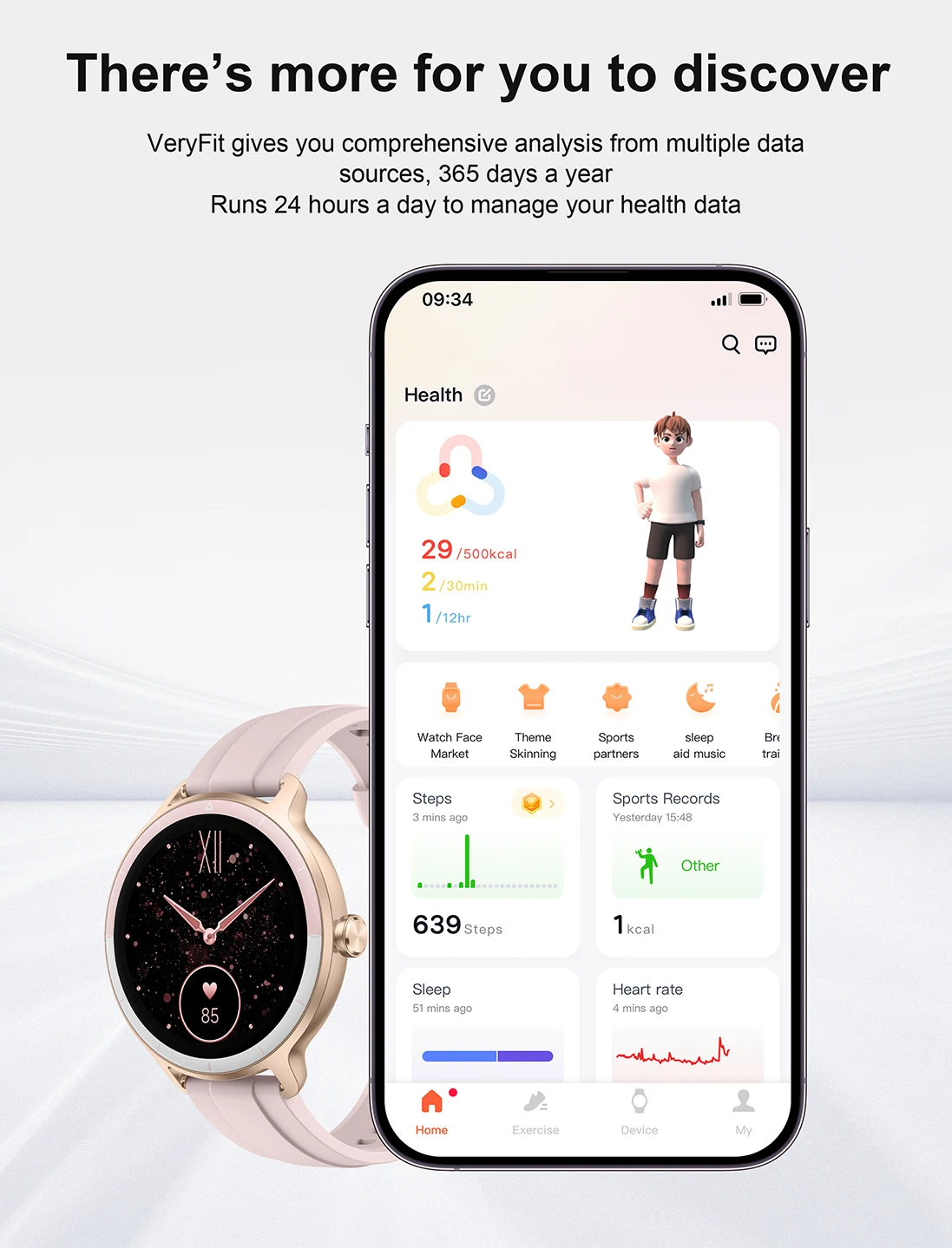 Health Function: blood pressure, blood oxygen blood, calorie tracker