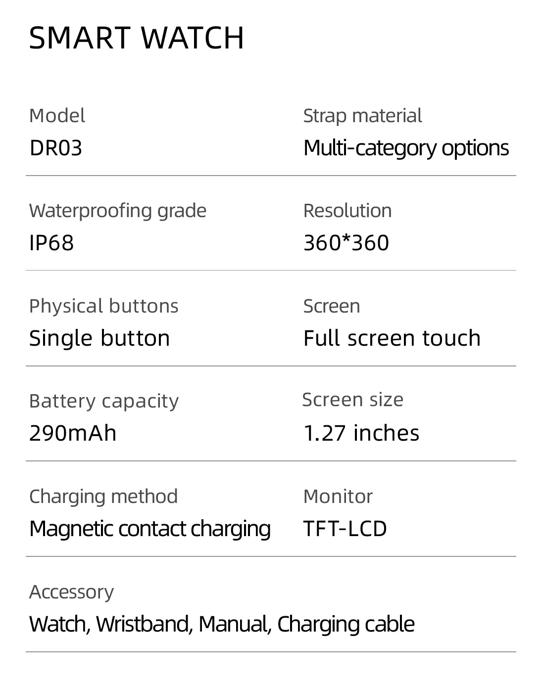 Smart Watch DR03 ECG Health Monitoring Waterproof 1.27 Inch Full Touch Screen Smart Watch for Men Women DR03
