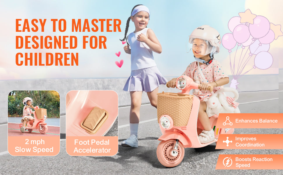 Fun Driving Experience: Designed for young riders, this kids ride on motorcycle features a low-speed design that helps kids balance and steer with confidence. Simply release the foot pedal to brake, making it easy for them to operate. Each ride is a chance for them to develop balance, coordination, and quick reflexes—all while having a blast!