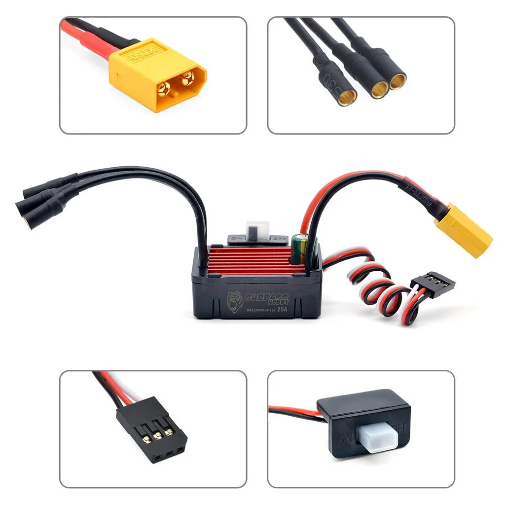 SURPASS HOBBY 25A 35A 45A 60A 80A 120A 150A Waterproof Brushless mini ESC T/XT60 for 1/10 RC Car Crawler speed controller Motor