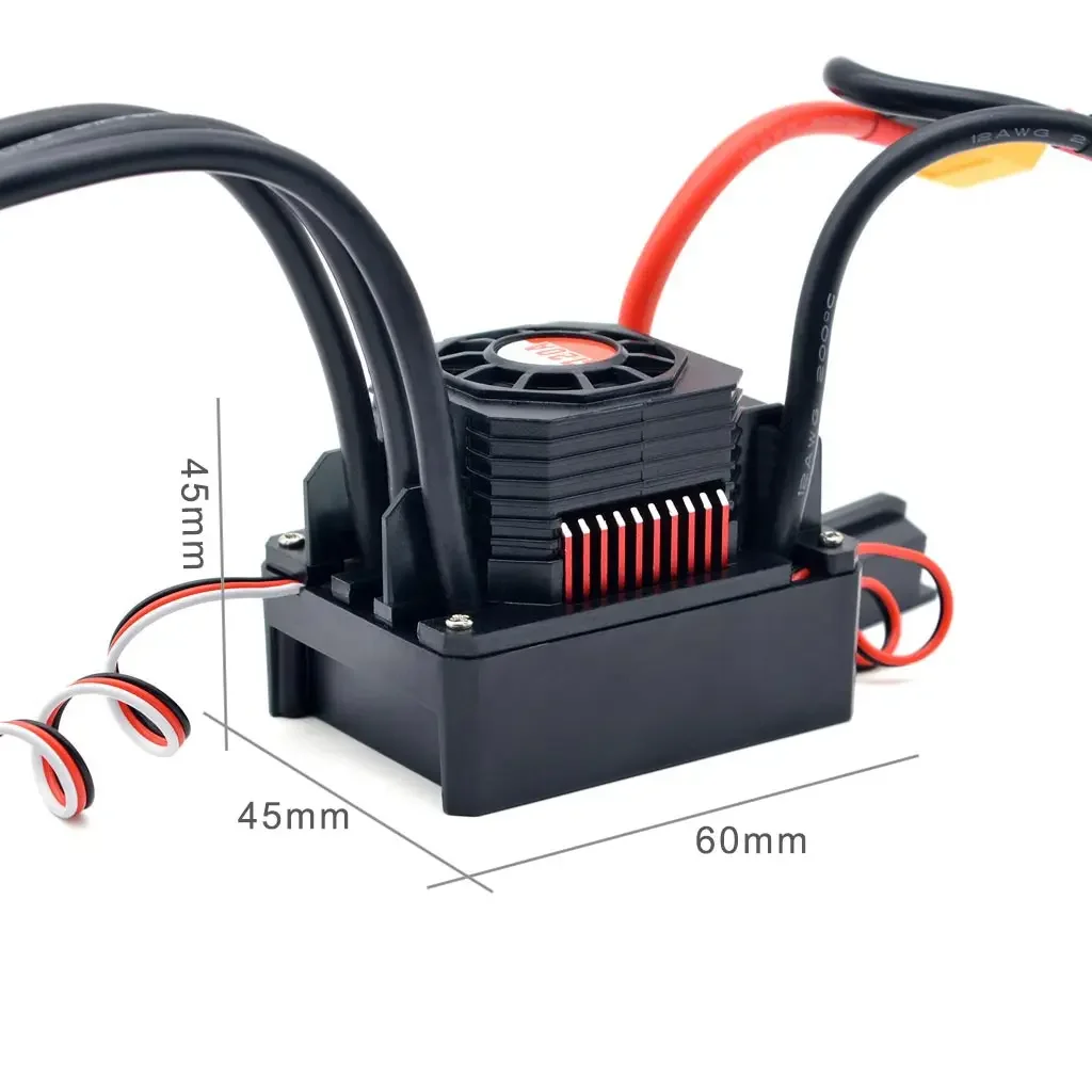 1. Water- proof and dust-proof for all-weather races; (Note: please uninstall the cooling fan before using this ESC in water;Clean and dry it soon after the use for avoiding the connectors get rusty.)