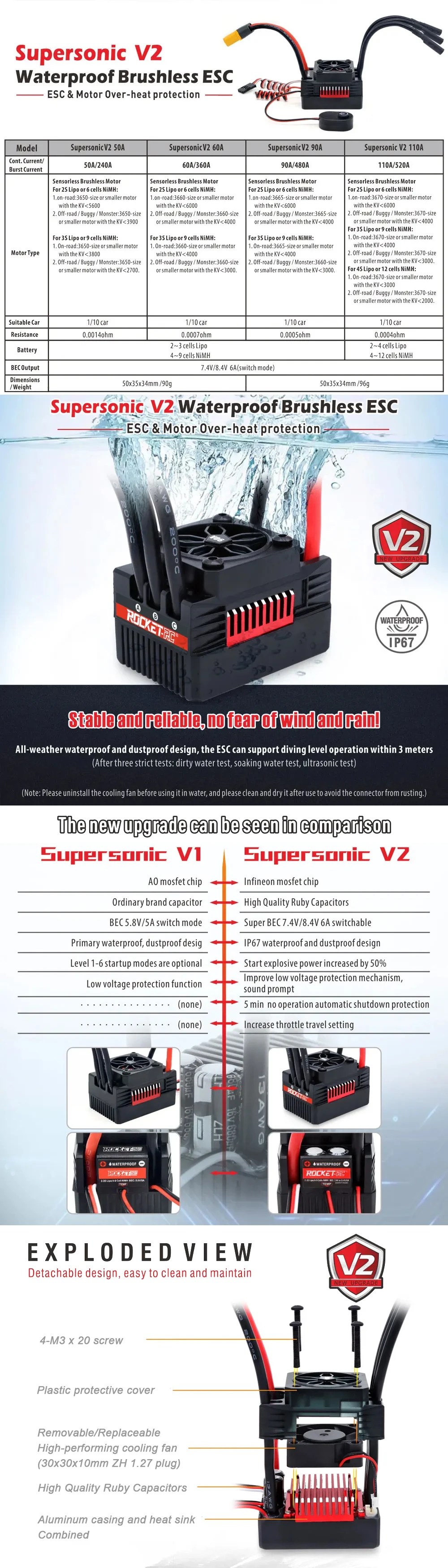 Surpass Hobby Surpasshobby Rocket V2 Supersonic 50A 60A 90A 110A 2-3S Waterproof Brushless ESC