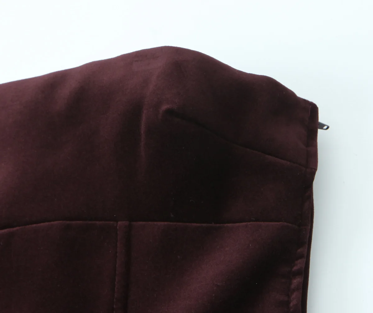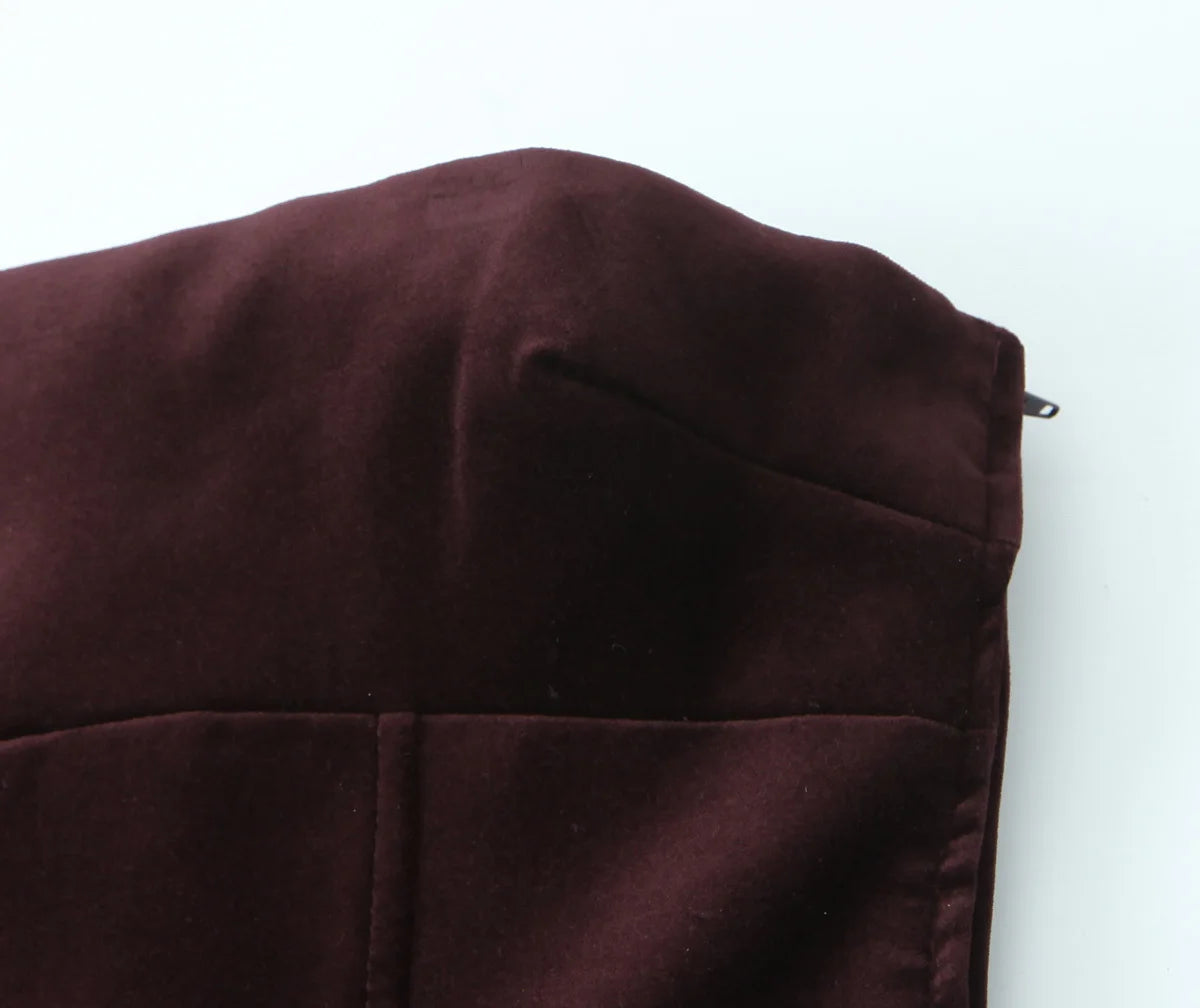 Sexy Elegant Women Burgundy Velvet Bow Strapless Dress