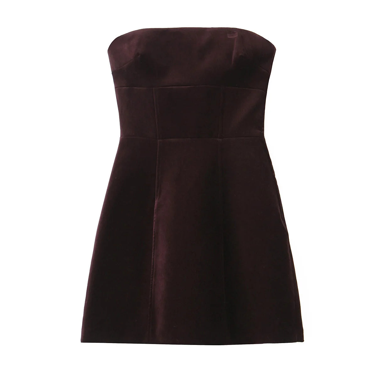 Sexy Elegant Women Burgundy Velvet Bow Strapless Dress Christmas Party Mini