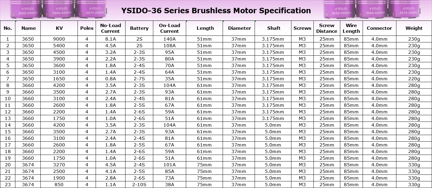 KV(RPM/Volt):3900KV /3600KV /3100KV /1650KV Optional